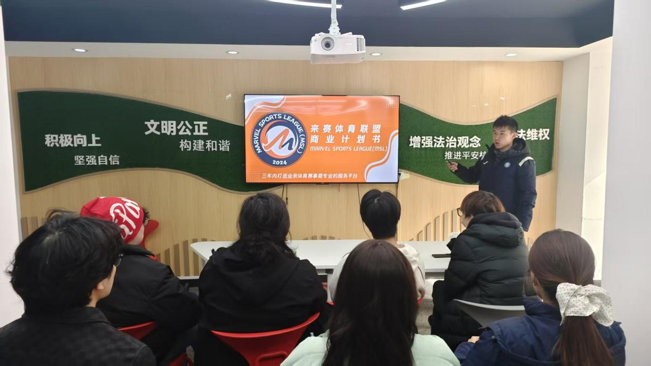 讲座中,马天罄结合自身东华大学市场营销本科、体育管理研究生背景,及国家一级足球裁判员、C级教练员资质,以来赛体育联盟从0到1的创业历程为核心案例展开分享。他先解读国务院7万亿体育产业规划政策红利,结合苏超、村超等业余赛事火爆案例,分析体育赛事运营的商业空间;再详解来赛体育联盟覆盖成人、青少年的赛事体系搭建,及各类品牌合作经验,为艺术设计专业学生提供“赛事IP视觉设计+品牌联动”的跨界创业思路。